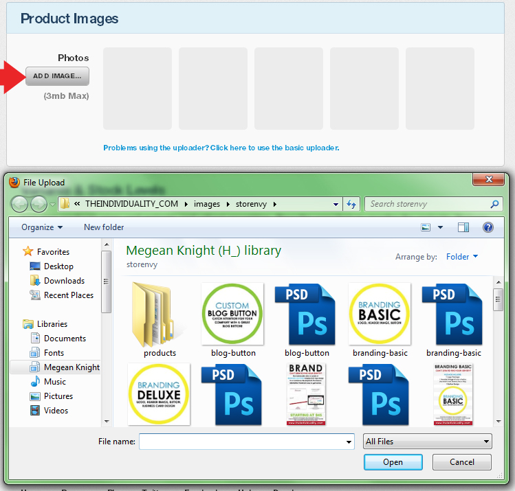 The process couldn't be simpler and I know you can do it! Simply click the "ADD IMAGE..." button, locate the images on your device and click open. The word open might be slightly different on your device, so do not worry if it says something different but similar.